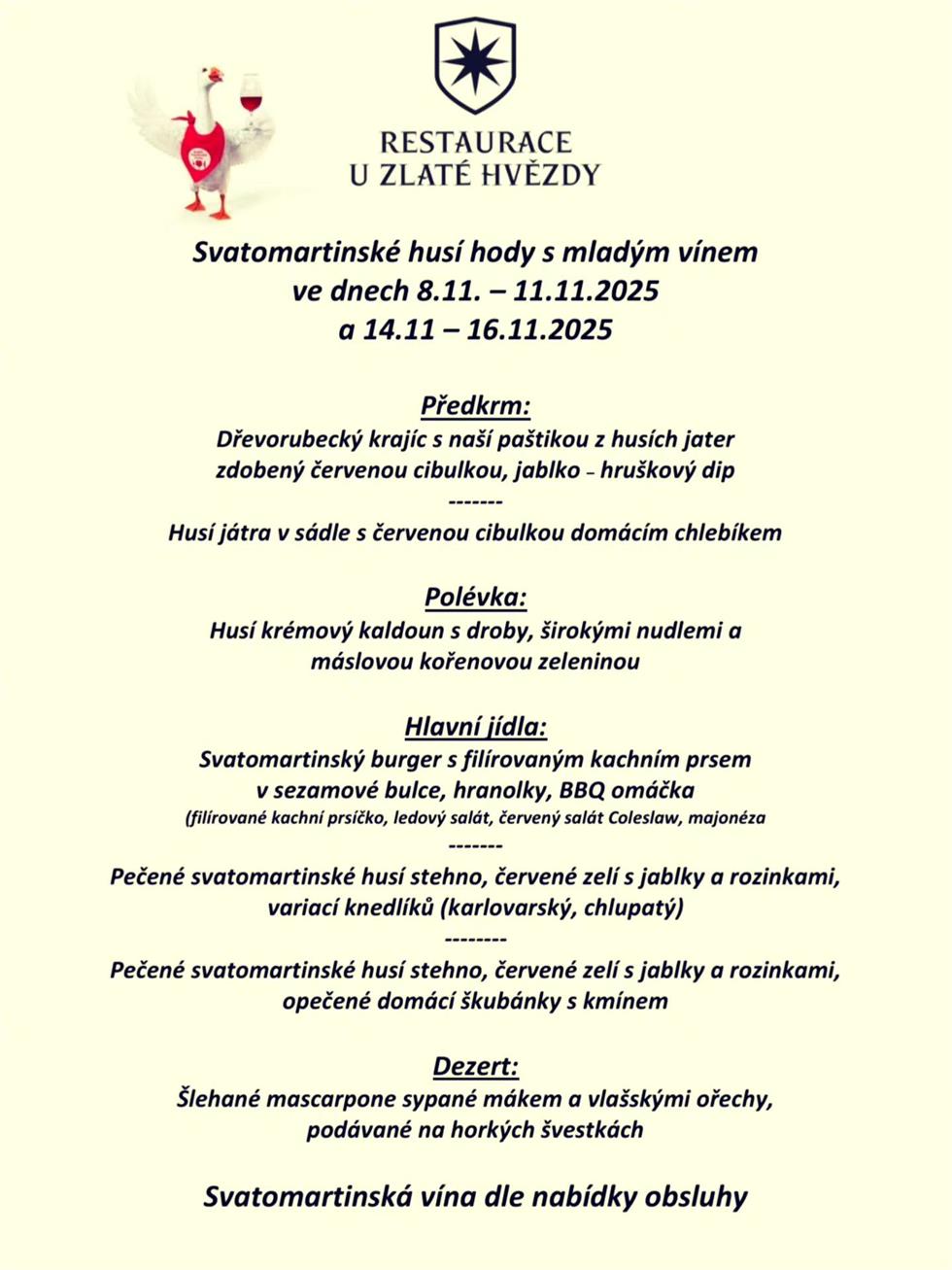 Přijďte si vychutnat husí hody doplněné mladým vínem na náměstí v Benešově.