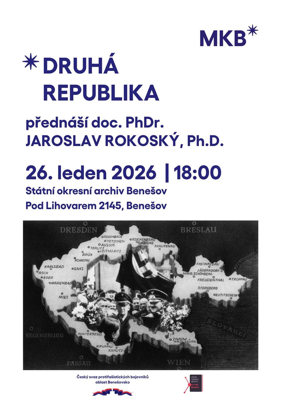 Přednáška doc. PhDr. Jaroslava Rokoského, Ph.D. o období Druhé republiky, které je rozporuplné a neprávem opomíjené téma. Je to problém krize demokracie a menšího státu, který se ocitl v opravdu těžké, až tragické situaci, pevně stisknut velmocenskými zájmy.