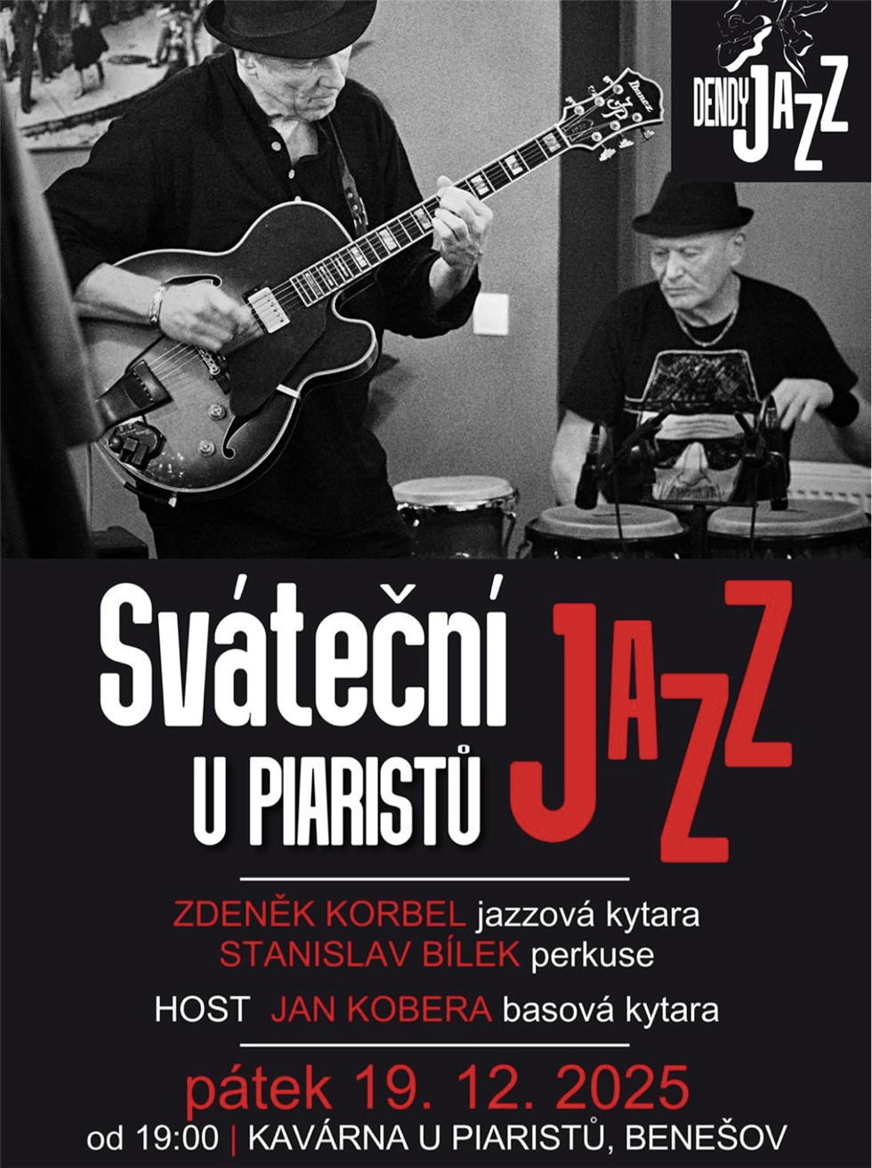 Zveme vás na Sváteční jazz s kapelou DENDY JAZZ. Čeká vás večer plný nadšení, skvělého groove a pohody, kterou nám přinese Zdeněk Korbel, Stanislav Bílek a host Jan Kobera.